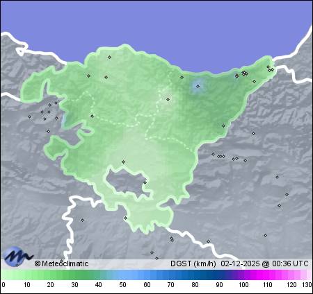 | 02-12-2025 | | | Máx. | Mín. | | | Temperatura | 15,0 | 5,1 | °C | | Humedad | 93 | 43 | % | | Viento | 58 | n/a | km/h | | Presión | 1.022 | 1.010 | hPa | | Precipitación | 0,0 | mm |