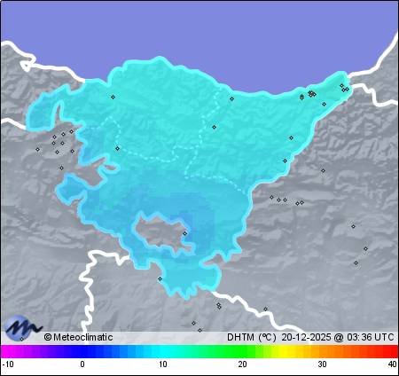 | Actualizado: 01:35 UTC | 9,9°C 94% | 10,3 °C / 94% |  | | 9,9°C / 93% | | Calma | | 0 km/h | | 1.017 hPa |
