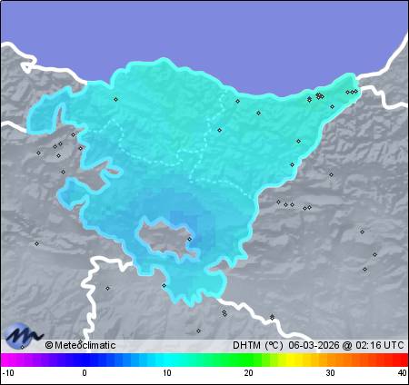| Actualizado: 00:16 UTC | 11,3°C 93% | 11,3 °C / 94% |  | | 10,9°C / 93% | | Calma | | 5 km/h | | 1.016 hPa | | 1,0 mm |