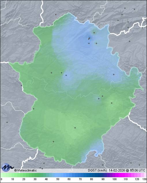 | Aldeanueva de la Vera | 667 | 9,1 | 9,1 | 4,2 | 45 | 68 | 42 | 1.021 | 1.021 | 1.007 | 26 NW | 61 | - | 615,4 | |