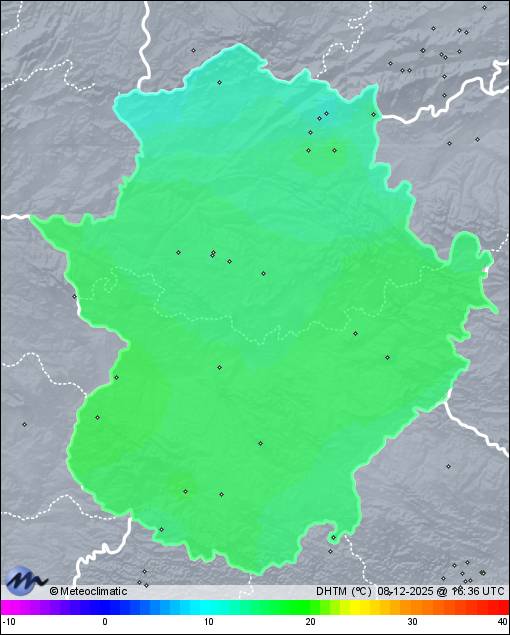 | Actualizado: 15:29 UTC | 7,2°C 86% | 8,7 °C / 97% |  | | 1,7°C / 78% | | 6 km/h SW | | 24 km/h | | 1.025 hPa |