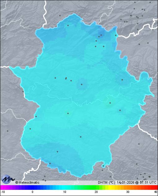 | Aldeanueva de la Vera | 667 | 6,0 | 10,8 | 4,8 | 83 | 95 | 73 | 1.023 | 1.023 | 1.018 | 6 NNW | 18 | 0,8 | 55,0 | |