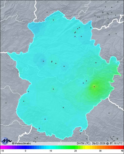 | Actualizado:27-02-2026 23:58 UTC | 10,6°C 89% | 17,9 °C / 96% | | 7,8°C / 66% | | 2 km/h NNE | | 17 km/h | | 1.022 hPa |