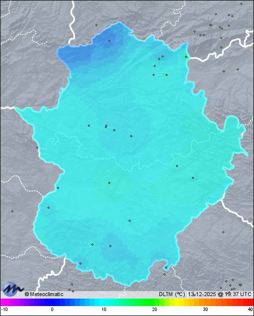 | Talayuela | 260 | 12,7 | 13,1 | 12,2 | 80 | 85 | 78 | 1.021 | 1.021 | 1.019 | 12 ENE | 35 | - | 833,4 | |