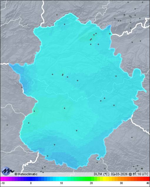 | Valverde de Burguillos | 420 | 6,3 | 8,5 | 5,9 | 97 | 97 | 90 | 1.009 | 1.013 | 1.009 | - | 0 | - | 313,9 | |