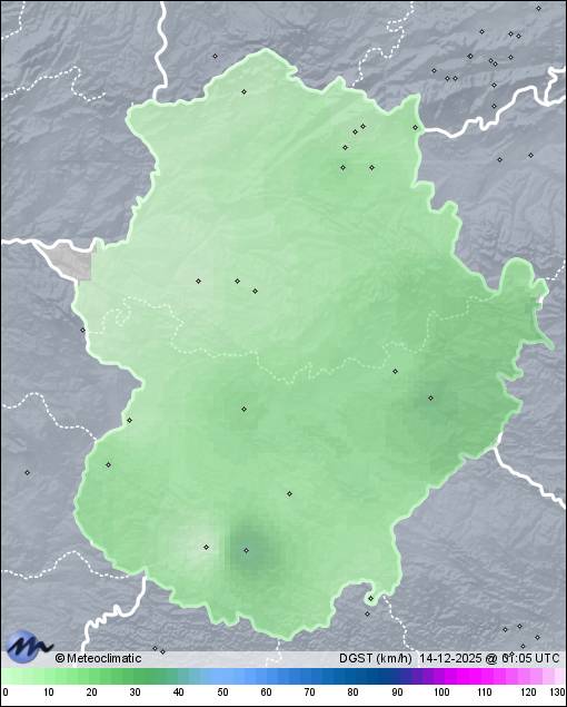 | Actualizado: 13:35 UTC | 7,2°C 83% | 8,5 °C / 99% | | 1,3°C / 69% | | 4 km/h NNE | | 32 km/h | | 1.018 hPa |