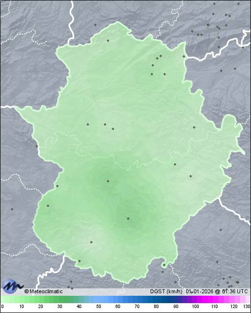 | Aldeanueva de la Vera | 667 | 4,9 | 6,1 | 1,8 | 92 | 93 | 83 | 1.018 | 1.022 | 1.017 | 2 ESE | 13 | 0,6 | 0,6 | |