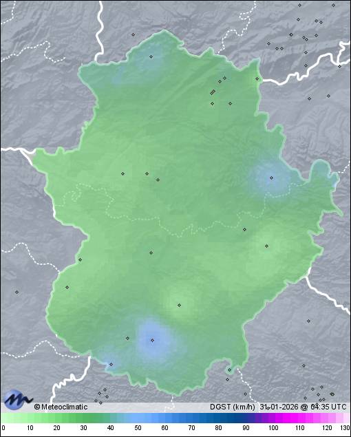 | Actualizado: 18:32 UTC | 8,9°C 85% | 10,5 °C / 96% | | 6,1°C / 74% | | 3 km/h W | | 48 km/h | | 1.024 hPa |
