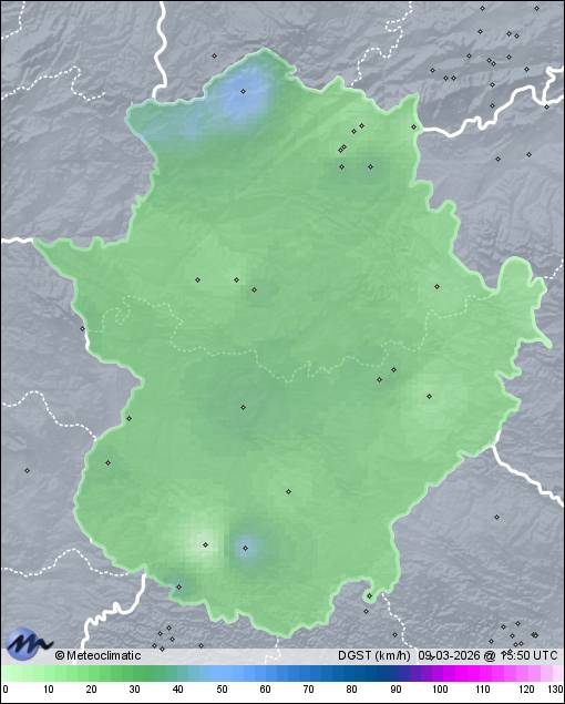 | Actualizado: 20:29 UTC | 6,9°C 74% | 11,3 °C / 91% | | 4,3°C / 56% | | 9 km/h N | | 28 km/h | | 1.021 hPa | | 1,5 mm |