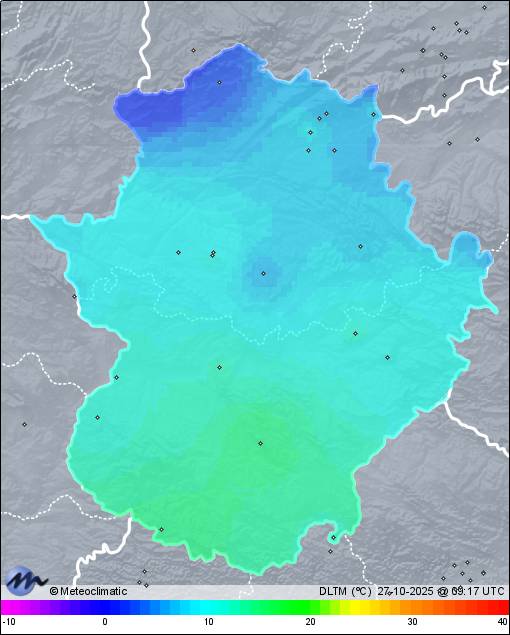 | Actualizado: 05:58 UTC | 9,7°C 93% | 12,7 °C / 94% | | 9,7°C / 88% | | 4 km/h ENE | | 11 km/h | | 1.023 hPa |