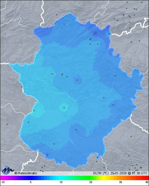 | Actualizado: 19:13 UTC | 9,7°C 57% | 12,5 °C / 98% | | 1,4°C / 42% | | 11 km/h S | | 48 km/h | | 1.012 hPa | | 0,8 mm |