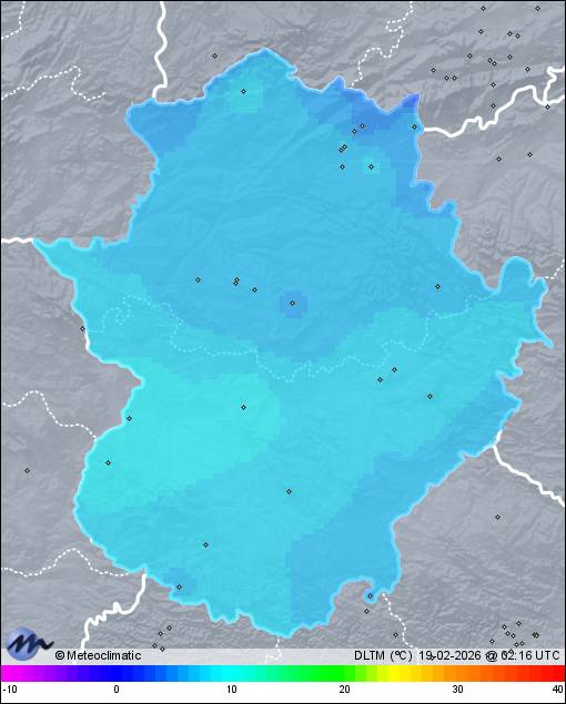 | Actualizado: 12:56 UTC | 10,4°C 63% | 10,4 °C / 92% | | 2,7°C / 62% | | 1.026 hPa |