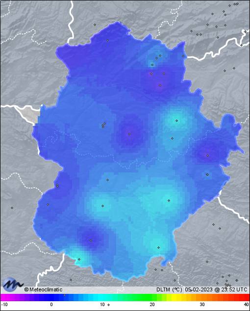 | 05-02-2023 | | | Máx. | Mín. | | | Temperatura | 16,8 | -1,8 | °C | | Humedad | 90 | 36 | % | | Presión | 1.031 | 1.027 | hPa | | Precipitación | 0,2 | mm |