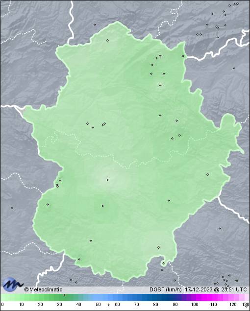 | 17-12-2023 | | | Máx. | Mín. | | | Temperatura | 13,6 | 3,9 | °C | | Humedad | 82 | 31 | % | | Viento | 7 | n/a | km/h | | Presión | 1.040 | 1.035 | hPa |