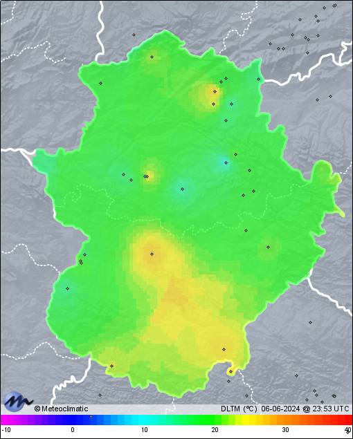 | 06-06-2024 | | | Máx. | Mín. | | | Temperatura | 37,0 | 14,7 | °C | | Humedad | 92 | 23 | % | | Viento | 24 | n/a | km/h | | Presión | 1.014 | 1.010 | hPa | | Precipitación | 0,0 | mm |