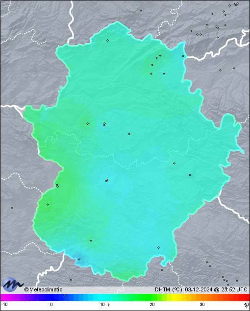 | 03-12-2024 | | | Máx. | Mín. | | | Temperatura | 13,7 | 5,2 | °C | | Humedad | 99 | 69 | % | | Viento | 30 | n/a | km/h | | Presión | 1.024 | 1.021 | hPa | | Precipitación | 0,0 | mm |