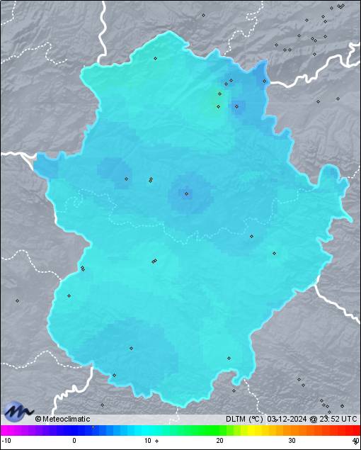 | 03-12-2024 | | | Máx. | Mín. | | | Temperatura | 11,9 | 9,7 | °C | | Humedad | 99 | 96 | % | | Viento | 9 | n/a | km/h | | Presión | 1.027 | 1.025 | hPa | | Precipitación | 0,0 | mm |
