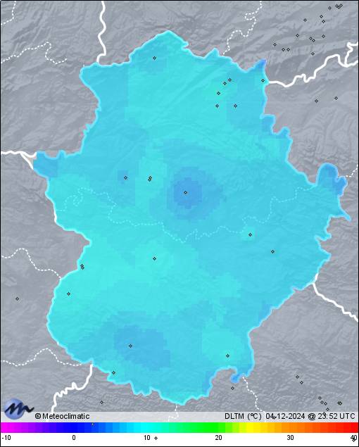 | 04-12-2024 | | | Máx. | Mín. | | | Temperatura | 20,4 | 7,9 | °C | | Humedad | 95 | 44 | % | | Viento | 40 | n/a | km/h | | Presión | 1.029 | 1.020 | hPa | | Precipitación | 0,0 | mm |