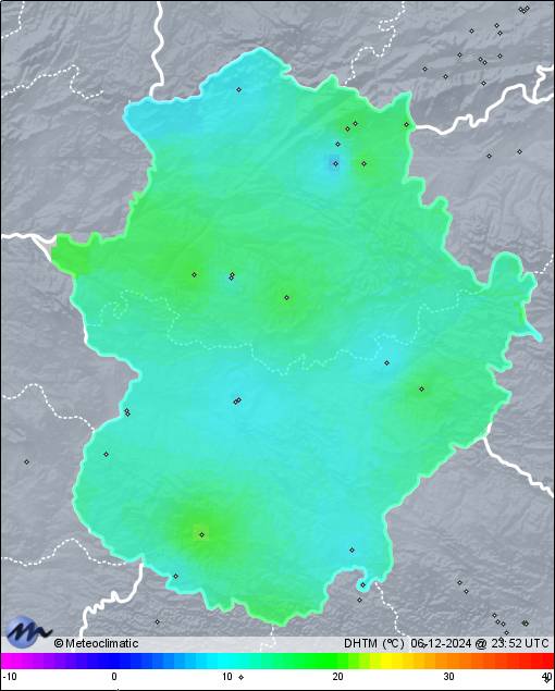 | 06-12-2024 | | | Máx. | Mín. | | | Temperatura | 18,6 | 7,1 | °C | | Humedad | 100 | 64 | % | | Presión | 1.031 | 1.027 | hPa |