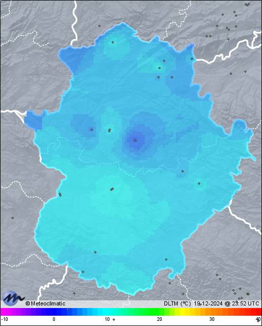 | 19-12-2024 | | | Máx. | Mín. | | | Temperatura | 17,0 | 7,8 | °C | | Humedad | 95 | 70 | % | | Viento | 29 | n/a | km/h | | Presión | 1.029 | 1.025 | hPa | | Precipitación | 4,2 | mm |