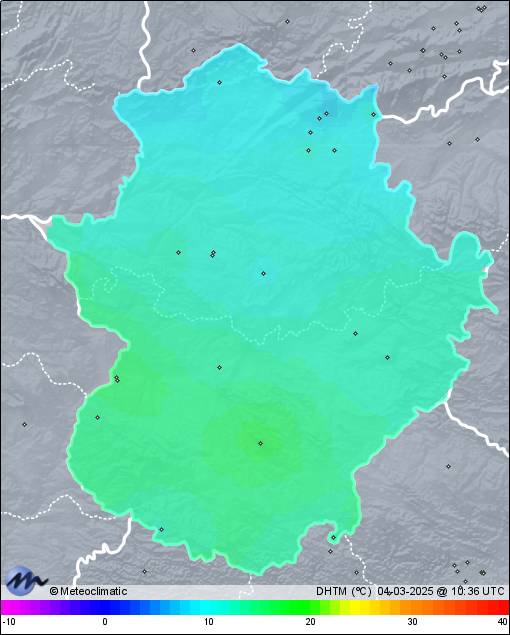 | 03-03-2025 | | | Máx. | Mín. | | | Temperatura | 9,0 | 6,0 | °C | | Humedad | 94 | 85 | % | | Viento | 32 | n/a | km/h | | Presión | 1.019 | 1.016 | hPa | | Precipitación | 41,6 | mm |