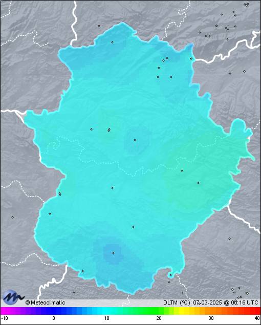 | 06-03-2025 | | | Máx. | Mín. | | | Temperatura | 13,3 | 7,7 | °C | | Humedad | 96 | 81 | % | | Viento | 28 | n/a | km/h | | Presión | 1.014 | 1.010 | hPa | | Precipitación | 8,4 | mm |