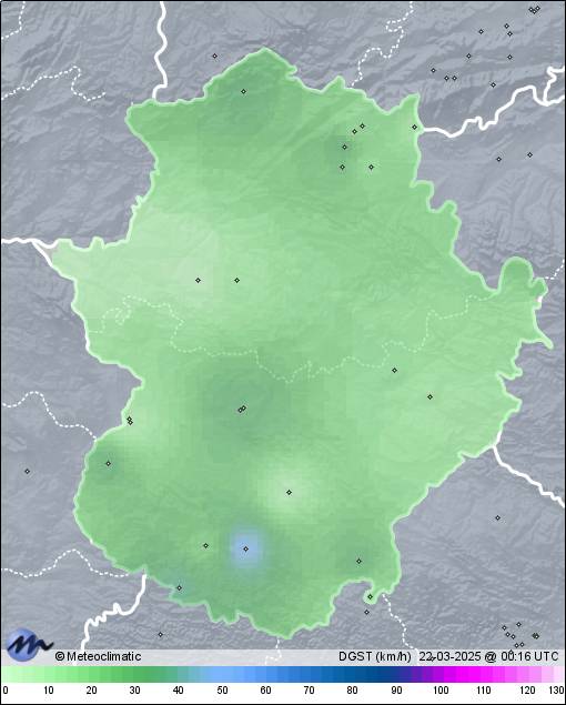 | 21-03-2025 | | | Máx. | Mín. | | | Temperatura | 17,0 | 9,1 | °C | | Humedad | 96 | 80 | % | | Viento | 50 | n/a | km/h | | Presión | 1.012 | 1.006 | hPa | | Precipitación | 0,0 | mm |