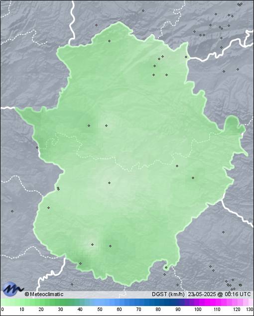 | 22-05-2025 | | | Máx. | Mín. | | | Temperatura | 28,5 | 11,2 | °C | | Humedad | 94 | 31 | % | | Viento | 48 | n/a | km/h | | Presión | 1.019 | 1.014 | hPa | | Precipitación | 0,0 | mm |