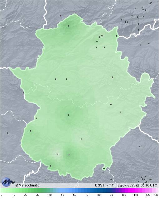 | 21-07-2025 | | | Máx. | Mín. | | | Temperatura | 31,6 | 14,9 | °C | | Humedad | 68 | 21 | % | | Viento | 37 | n/a | km/h | | Presión | 1.013 | 1.011 | hPa | | Precipitación | 0,0 | mm |