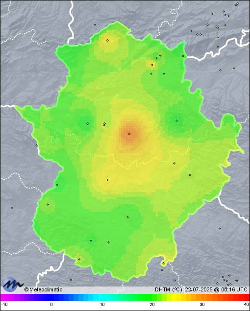 | 21-07-2025 | | | Máx. | Mín. | | | Temperatura | 28,2 | 14,0 | °C | | Humedad | 65 | 33 | % | | Viento | 13 | n/a | km/h | | Presión | 1.017 | 1.012 | hPa | | Precipitación | x | mm |