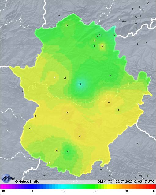 | 24-07-2025 | | | Máx. | Mín. | | | Temperatura | 30,8 | 16,6 | °C | | Humedad | 66 | 22 | % | | Viento | 35 | n/a | km/h | | Presión | 1.015 | 1.010 | hPa | | Precipitación | 0,0 | mm |