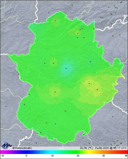 | 20-08-2025 | | | Máx. | Mín. | | | Temperatura | 29,9 | 13,2 | °C | | Humedad | 91 | 25 | % | | Viento | 44 | n/a | km/h | | Presión | 1.017 | 1.014 | hPa | | Precipitación | 0,0 | mm |