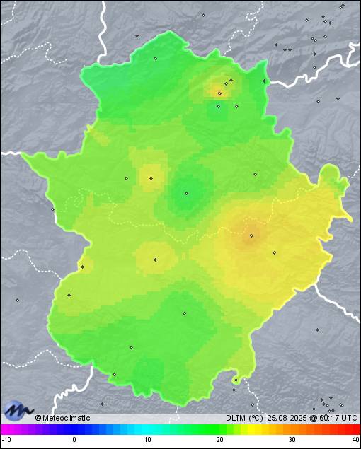 | 24-08-2025 | | | Máx. | Mín. | | | Temperatura | 22,2 | 18,8 | °C | | Humedad | 58 | 44 | % | | Viento | 19 | n/a | km/h | | Presión | 1.017 | 1.016 | hPa | | Precipitación | 0,0 | mm |