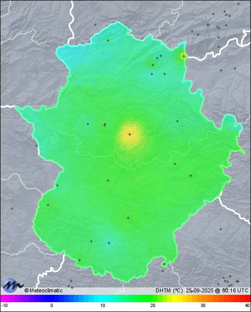 | 24-09-2025 | | | Máx. | Mín. | | | Temperatura | 21,7 | 7,9 | °C | | Humedad | 68 | 35 | % | | Viento | 13 | n/a | km/h | | Presión | 1.025 | 1.020 | hPa | | Precipitación | x | mm |