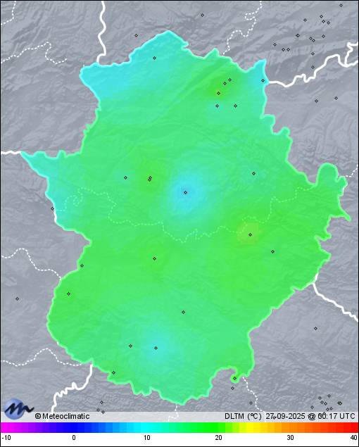 | 26-09-2025 | | | Máx. | Mín. | | | Temperatura | 25,3 | 12,8 | °C | | Humedad | 48 | 23 | % | | Viento | 18 | n/a | km/h | | Presión | 1.022 | 1.019 | hPa | | Precipitación | x | mm |
