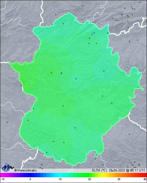 | 28-09-2025 | | | Máx. | Mín. | | | Temperatura | 19,7 | 15,2 | °C | | Humedad | 97 | 45 | % | | Viento | 18 | n/a | km/h | | Precipitación | 0,0 | mm |