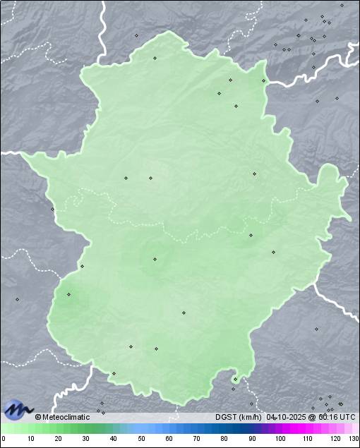 | 03-10-2025 | | | Máx. | Mín. | | | Temperatura | 31,6 | 10,2 | °C | | Humedad | 96 | 26 | % | | Viento | 33 | n/a | km/h | | Presión | 1.022 | 1.019 | hPa | | Precipitación | 0,0 | mm |