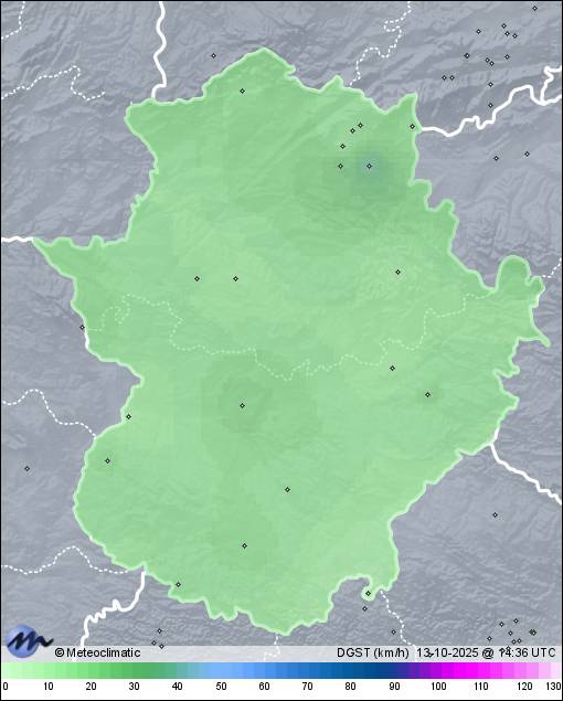 | Aldeanueva de la Vera | 667 | 23,6 | 23,6 | 13,7 | 54 | 84 | 53 | 1.017 | 1.019 | 1.017 | 5 ENE | 15 | - | 1.147,2 | |