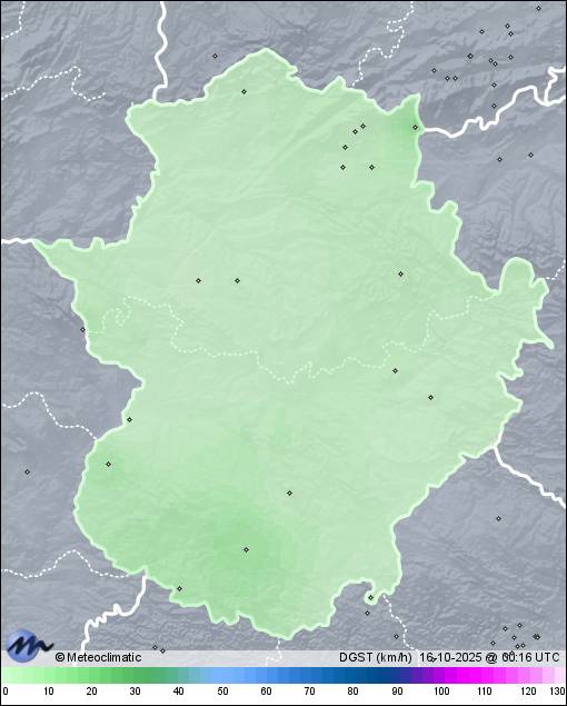 15-10-2025 | | Máx. | Mín. | | Temperatura | 30,0 | 10,5 | °C | Humedad | 96 | 25 | % | Viento | 30 | n/a | km/h | Presión | 1.019 | 1.014 | hPa | Precipitación | 0,0 | mm |
