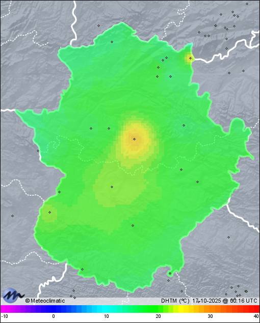 16-10-2025 | | Máx. | Mín. | | Temperatura | 30,8 | 16,3 | °C | Humedad | 74 | 41 | % | Viento | 16 | n/a | km/h | Presión | 1.017 | 1.014 | hPa | Precipitación | 0,0 | mm |