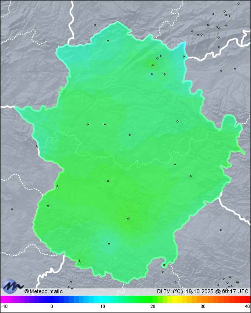 17-10-2025 | | Máx. | Mín. | | Temperatura | 27,6 | 9,4 | °C | Humedad | 89 | 35 | % | Viento | 19 | n/a | km/h | Presión | 1.017 | 1.013 | hPa | Precipitación | 0,0 | mm |
