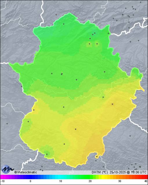 | Actualizado: 08:20 UTC | 10,8°C 89% | 12,5 °C / 92% | | 9,6°C / 76% | | 2 km/h W | | 30 km/h | | 1.012 hPa |