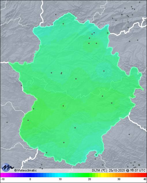 | Actualizado: 08:26 UTC | 19,0°C 88% | 19,5 °C / 95% | | 17,4°C / 83% | | 5 km/h S | | 20 km/h | | 1.014 hPa | | 0,3 mm |