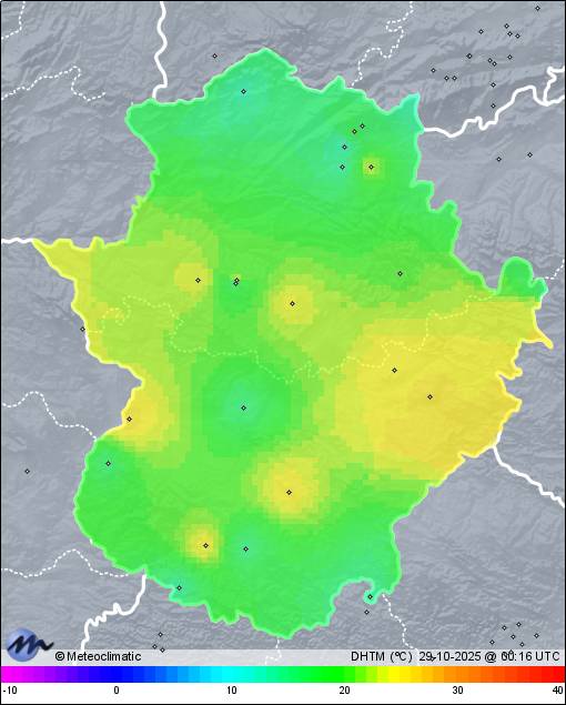 | Actualizado: 19:30 UTC | 9,8°C 82% | 15,9 °C / 89% | | 1,8°C / 32% | | 7 km/h E | | 28 km/h | | 1.013 hPa | | 0,2 mm |