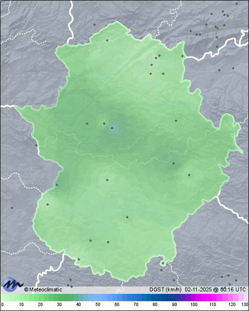 | Sierra de Fuentes | 410 | 16,4 | 19,6 | 15,2 | 89 | 89 | 66 | 1.022 | 1.022 | 1.016 | 5 WSW | 42 | - | 50,0 | |