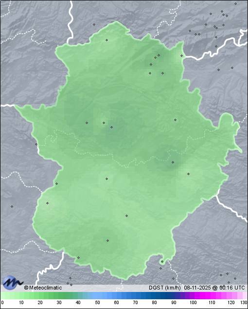 | Cáceres Norte | 395 | 14,2 | 15,8 | 10,6 | 99 | 99 | 87 | 1.016 | 1.018 | 1.014 | 9 W | 20 | 3,3 | 677,9 | |