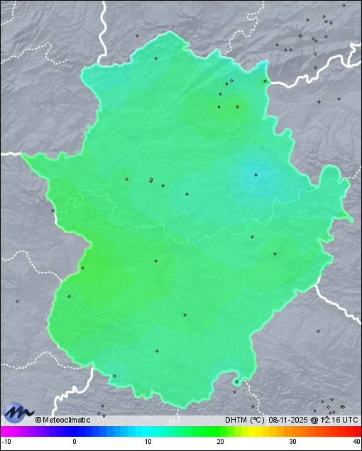 | Actualizado: 07:32 UTC | 7,9°C 90% | 12,6 °C / 96% |  | | 7,8°C / 79% | | Calma | | 32 km/h | | 1.020 hPa |