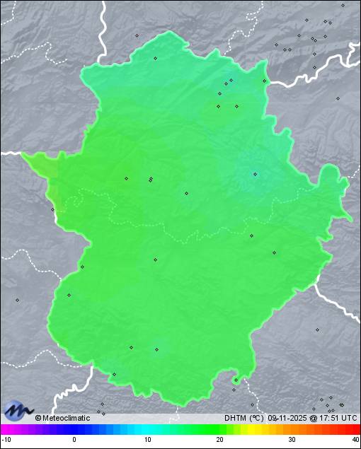 | Actualizado: 15:00 UTC | 18,7°C 55% | 19,3 °C / 95% | | 5,1°C / 53% | | 1 km/h SW | | 7 km/h | | 1.021 hPa | | 0,2 mm |