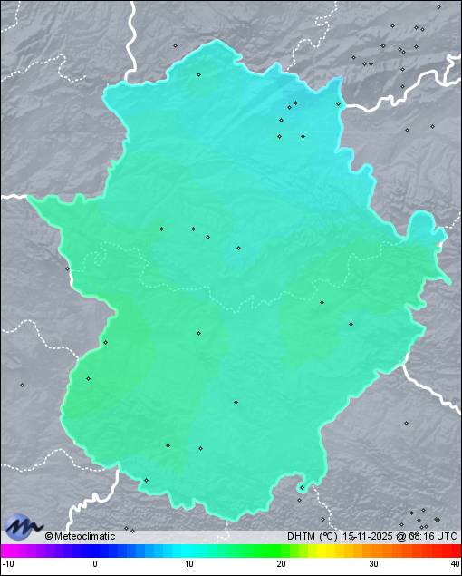 | Cáceres Norte | 395 | 12,5 | 12,5 | 11,2 | 98 | 99 | 96 | 1.010 | 1.010 | 1.009 | 4 SSE | 17 | 3,1 | 727,7 | |