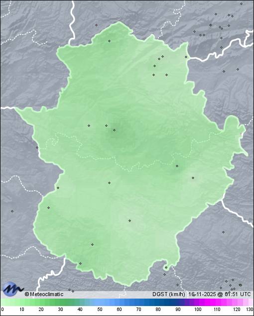 | Sierra de Fuentes | 410 | 12,2 | 12,2 | 11,9 | 93 | 93 | 92 | 1.012 | 1.012 | 1.012 | 11 SSW | 20 | - | 110,4 | |
